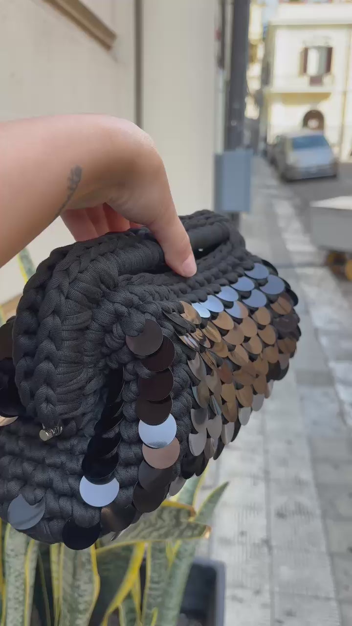 Scopri l'eleganza scintillante della nostra clutch bag con paillettes, perfetta per aggiungere un tocco di glamour a ogni tuo outfit serale. Compatta e raffinata, questa borsa unisce stile e praticità, ideale per portare con te l'essenziale con un tocco di brillantezza irresistibile. Scegli la clutch che fa brillare le tue serate.